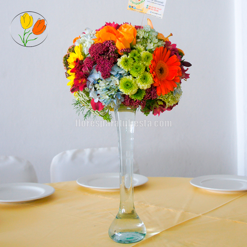 Muchas gracias por su visita. Cotiza hoy mismo Primaveral en yarda de vidrio. Cuando organizamos una fiesta tenemos algunos elementos que no podemos perder de vista. Es necesario decorar la mesa, el salón/jardín y los diferentes espacios, etc. Tomando en cuenta que las decoraciones se hacen siguiendo una temática general (Boda, XV años, Bautizo, graduación, etc). Es natural buscar una opción que combine colores, tema y las flores favoritas del organizador. A continuación compartimos con ustedes algunas ideas. Los diseños son para fiestas y reuniones. Los arreglos y decoración pueden ser útiles para fiestas infantiles, de adultos, cumpleaños, aniversarios, etc.